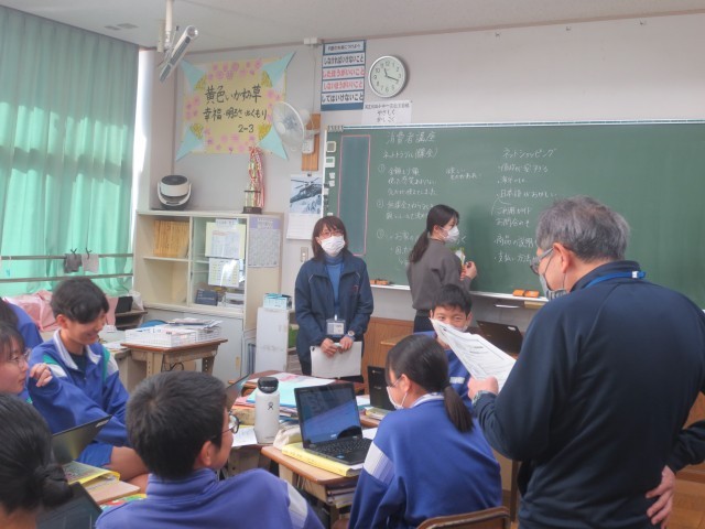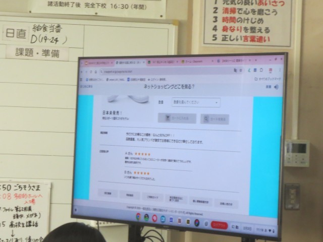 23家庭科では、本日も沼津市消費者生活センターの方をお招きして消費者出前講座を行いました。実際にありそうな、オンラインショッピングのサイトを疑似体験しどんなことに注意したらトラブルに巻き込まれないかそれぞれの気づきをシェアしています。