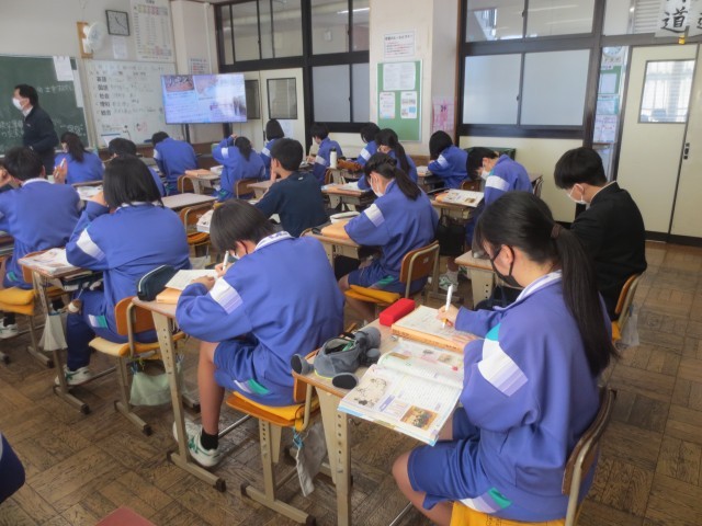 24社会では、日清戦争について学習をしています。当時の日本と清の関係や、戦争に至った背景、戦後の日本社会への影響について、資料や教科書をもとに考えを深めています。