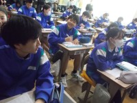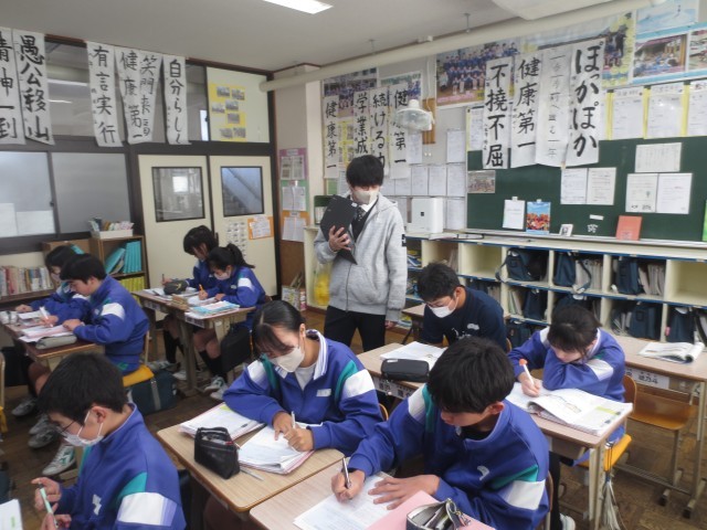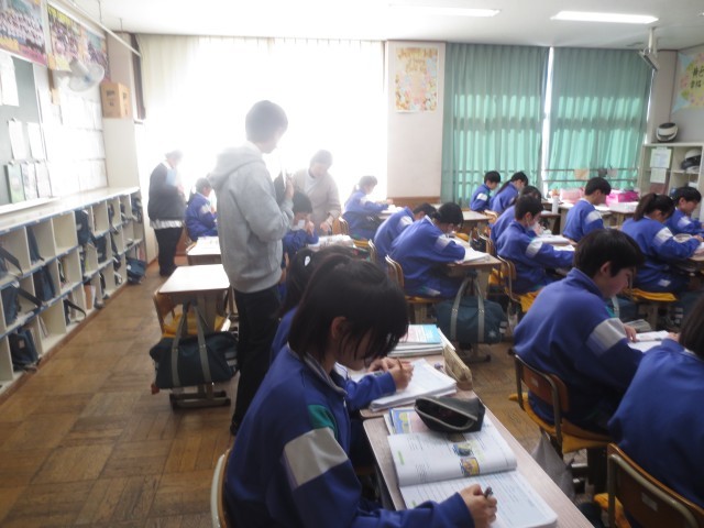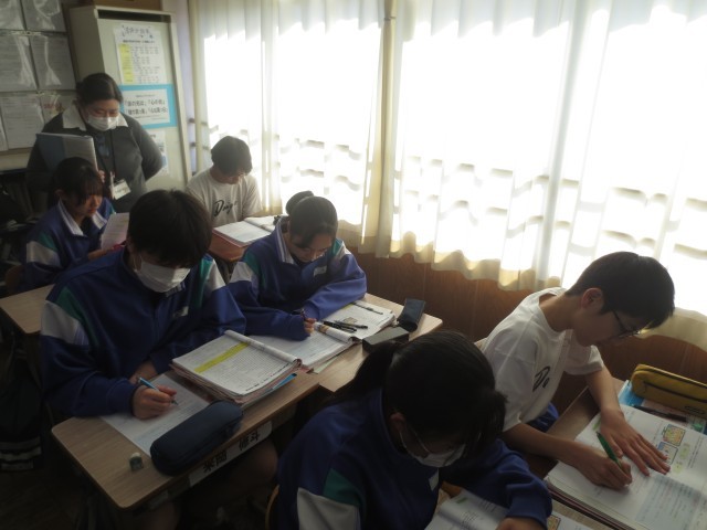 23英語では、教科書の内容について確認しています。ALTとTTもサポートに入り、生徒一人一人の理解に寄り添いながら学習を進めました。実際に声に出して練習したり、友達とやり取りをしたりする中で、英語で伝える楽しさを感じる様子が見られました。
