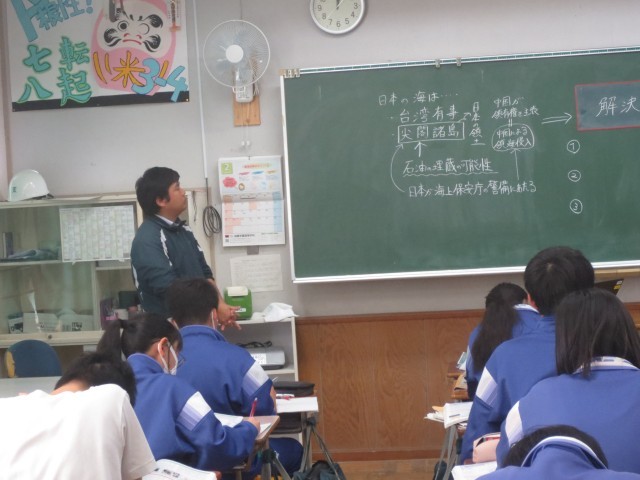 34社会では、領有権について学び、どのような解決策があるのか考えています。