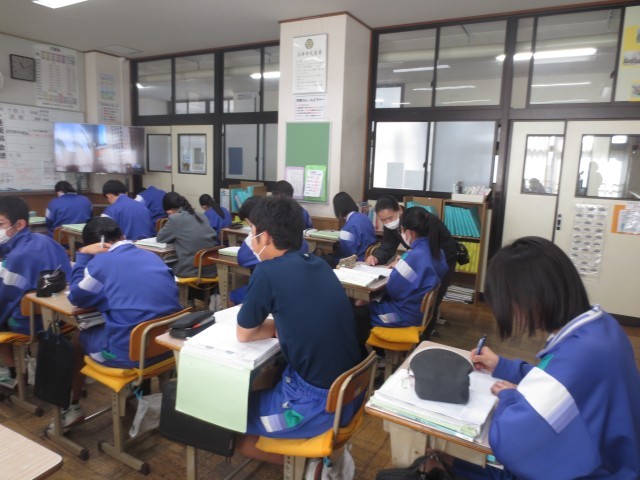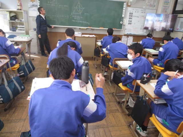 23数学では、図形の学習も佳境に入っています。さまざまな定理を活用しながら問題に取り組み、生徒たちはもくもくと考え、友達や先生と解き方を確かめ合いながら理解を深めていました。