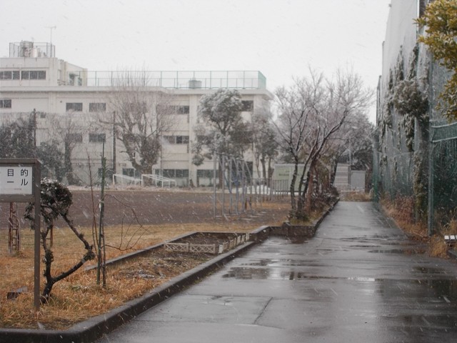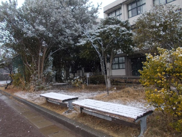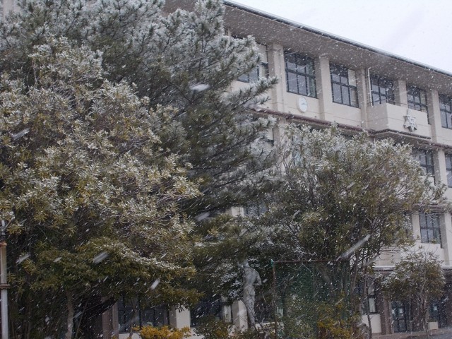 午後から降り始めた雪が大粒となり、五中も雪化粧です。