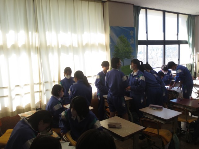 34数学では、公立高校入試に向けて、教え合いを中心とした学習に取り組んでいます。仲間を思いやりながら声を掛け合い、互いに支え合う姿が見られました。