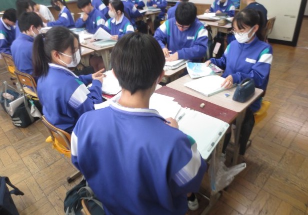 34国語では、坊ちゃんを学習しています。34が考えた学習課題を解決するために、グループで取り組んでいます。