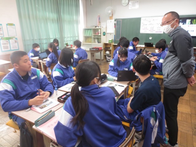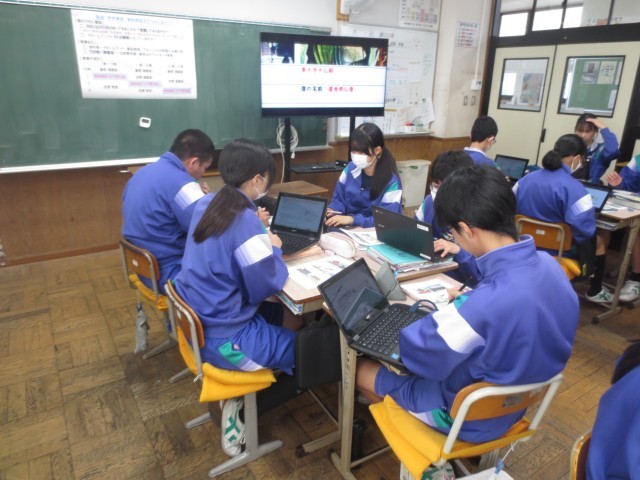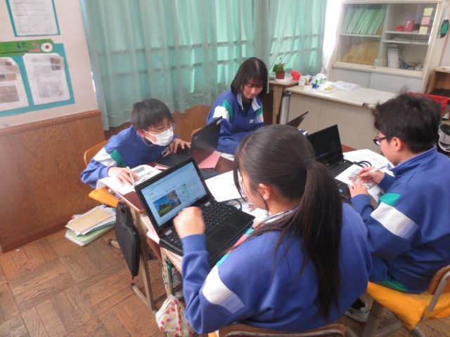 22は、修学旅行に向けて調べ学習を行っています。班で役割分担をしながら、訪問先の見どころや歴史・文化について調べ、協力して準備を進める姿が見られました。