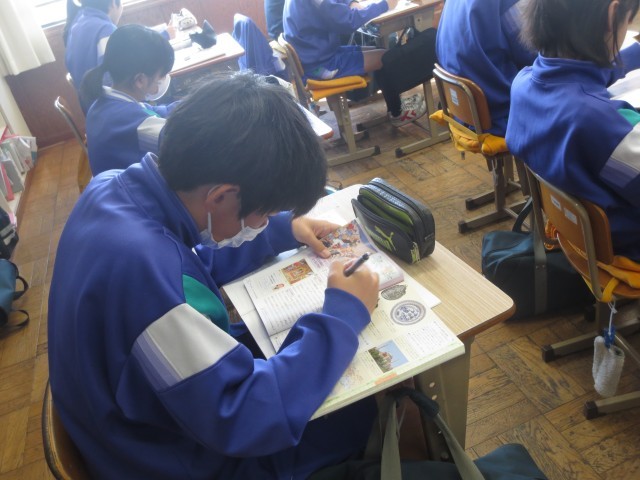 14社会では、平安時代から鎌倉時代にかけて、世界ではどのような出来事が起こっていたのかを、5W1Hを活用して整理しながら考えていました。日本の歴史と世界の動きを関連付けて捉えることで、当時の時代背景を多面的に理解しようとする姿が見られました。