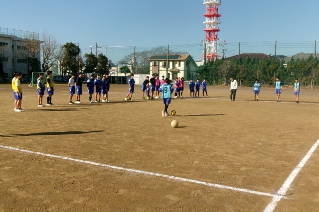 サッカーのインサイドキックの練習をしています。狙ったところに正確に蹴ることができれば、ゲームでも役立ちそうですね。