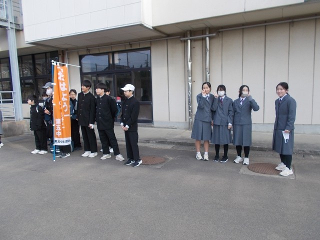 今日は、2月20日。0のつく日あいさつ運動を行っています。朝から気持ちの良いあいさつが交わされています。