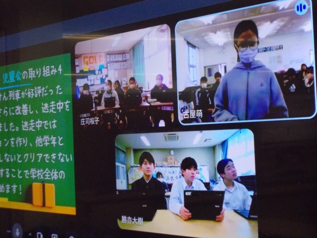 放課後は、五小・開北小児童会と本校生徒会による児童生徒合同会議をミートで開催しています。