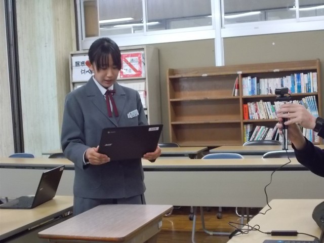 五中生徒会は、後期に取り組んできた内容をわかりやすく話し、活動を振り返りました。