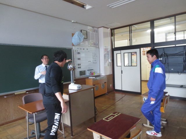 6組の理科では、電気を発生させる装置を使って、さまざまな実験を行っています。発電のしくみを実際に体験しながら、電気の性質や働きについて理解を深めています。実際に自分の身体に電気を流す実験に、担当の先生や担任の先生がチャレンジする場面では、教室にドキドキした雰囲気が広がり、興味津々で見守っていました。