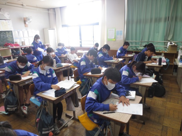 14数学では、振り返りを行っていました。自分の学びに向かう姿勢を振り返りながら、これまでの学習の理解度や取り組み方について考えていました。一人一人が落ち着いた雰囲気の中で、自分の学習を見つめ直す時間となっています。