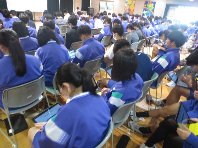 講座では、「からだの境界線」が破られるとき、人はどのような気持ちになるのかを考えながら、命や心、体を大切にすることの意味について学びました。講演中にはGoogleフォームを活用し、「自分だったらどう考えるか」「どう行動するか」について一人一人が考えを入力しながら、主体的に学びを深めていきました。これからそれぞれの進路へ進んでいく3年生には、自分らしい人生を思い描きながら、自他共に大切にし、よりよく生きる力を育み続けてほしいと思います。