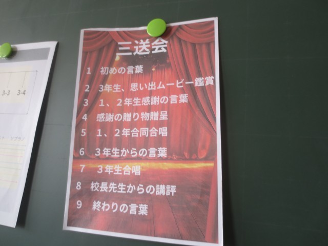 いよいよ3学期も残すところあと5日となり、本日は三年生を送る会当日を迎えました。これまで1・2年生を中心に準備を重ねてきた思いを、3年生にしっかりと届けようと朝から準備が始まっています。