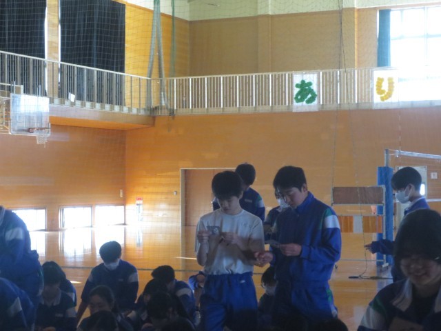 3年生では、学年レクリエーションとしてビンゴ大会を行っています。自分のお目当ての番号が呼ばれるたびに歓声が上がり、仲間とともに卒業までの楽しい時間を過ごしている様子が見られました。