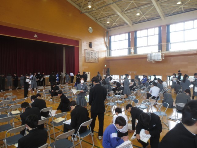 卒業アルバムが配布されました。生徒たちは互いにメッセージを書き合い、これまでの思い出や感謝の気持ちを言葉にしていました。先生方も、生徒一人一人に向けて、これからの門出を応援するはなむけの言葉を書いていました。