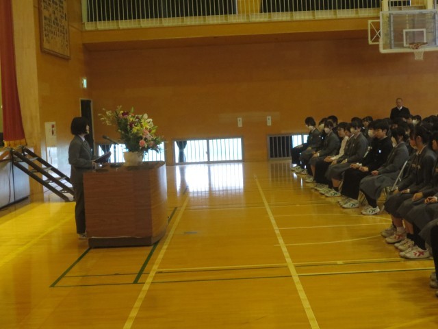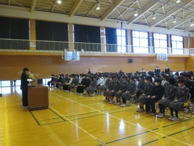 修了証書授与後には、各学年の代表生徒より、今年度を振り返っての思いや来年度への抱負が語られました。学校生活の中で得た学びや仲間との関わりを大切にしてきたこと、そして次の学年に向けてさらに成長していきたいという前向きな決意が力強く伝えられました。