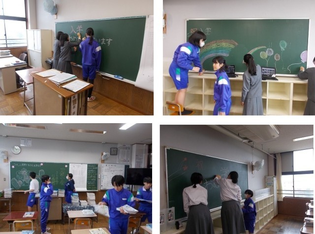 入学式準備のようすです。2・3年生が、新入生のために、心を込めて準備を行いました。これで入学式も無事行うことができます。ありがとうございました。