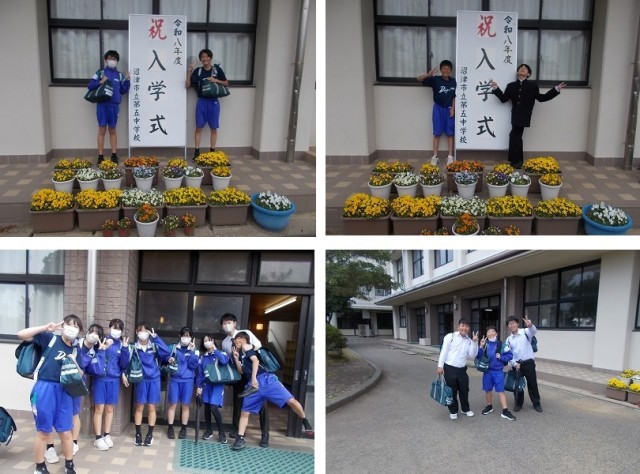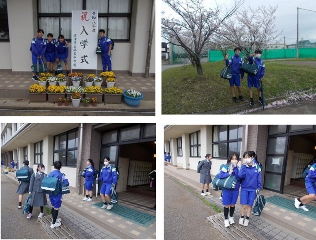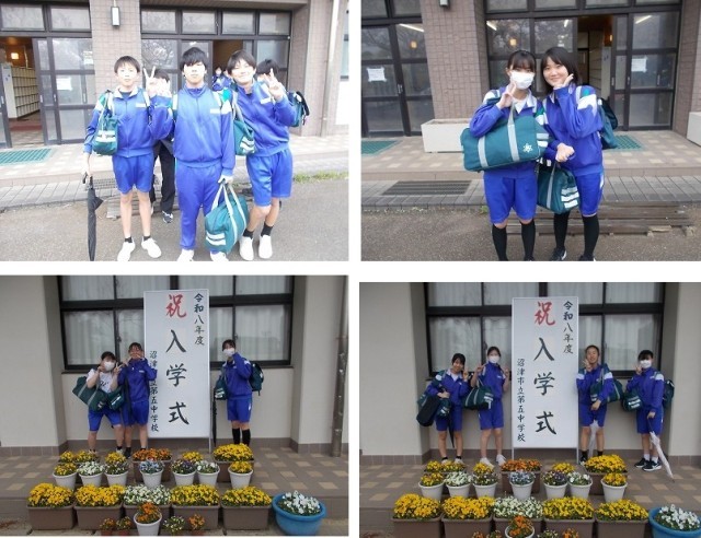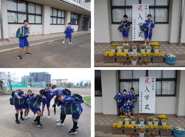 入学式の写真スポットでは、新入生より一足先に、2・3年生が記念撮影をしていました。