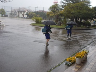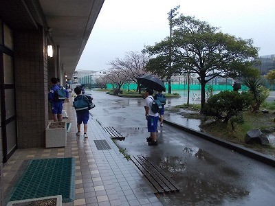 下校時、風雨が強くなってきましたが、無事下校していきました。