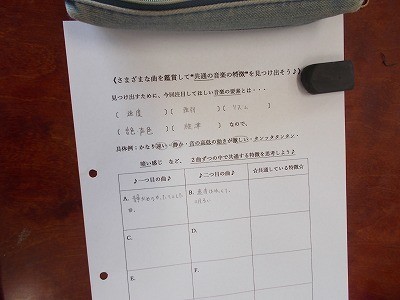いろいろな曲を、先生がピアノで弾き、どんな印象を受けるのか考えています。