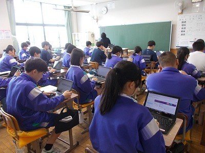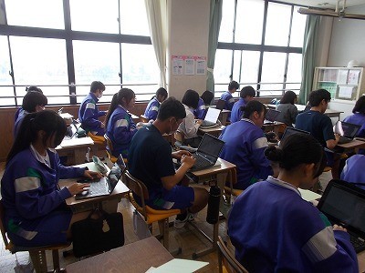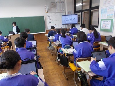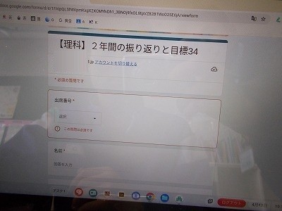 クロームブックを使って、2年生の振り返りを行っています。3年生になって、どんなことを頑張っていきたいか考えていました。