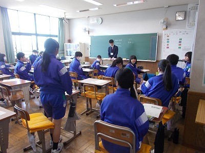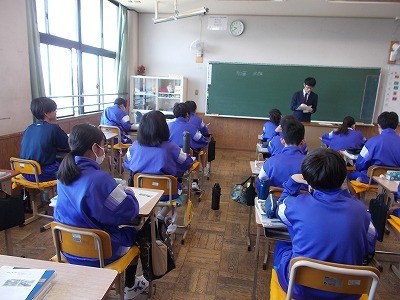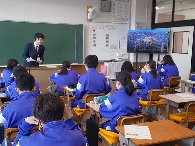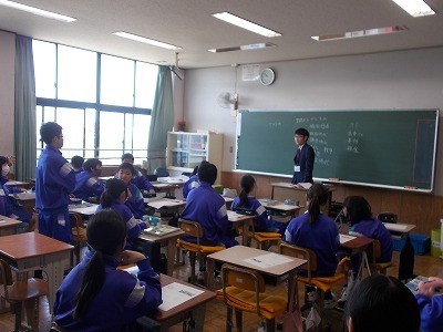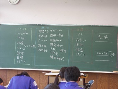 生徒が社会について知っていることを話した後、それぞれを歴史、地理、公民に分類していました。