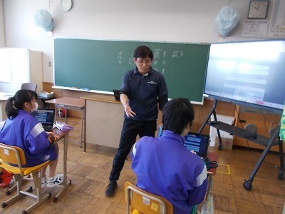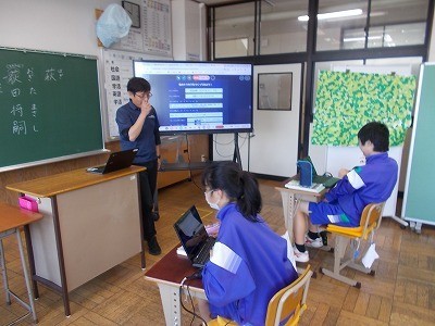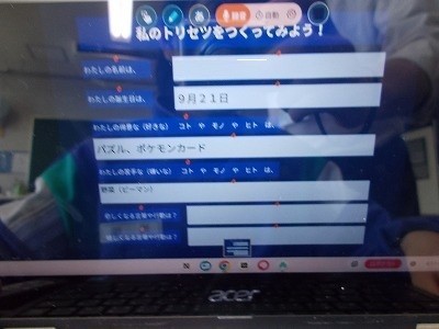 自己紹介カードをつくっています。つくった後は、音声入力していました。