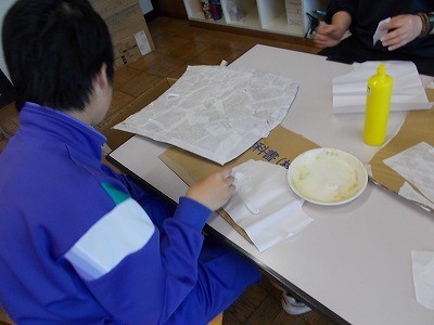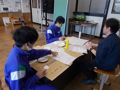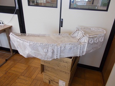 船の帆をつくっています。いままで船を作ってきた成果が出ています。立派な船ができあがってきました。