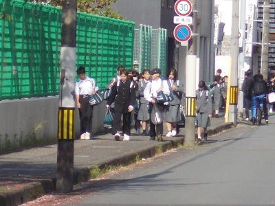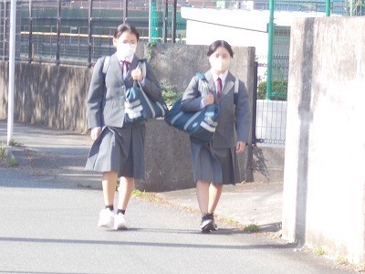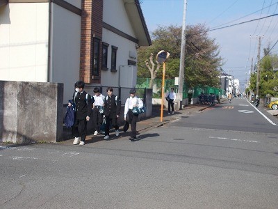 登校のようすです。今日も晴天に恵まれ、気持ちのよい朝を迎えています。