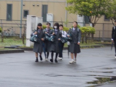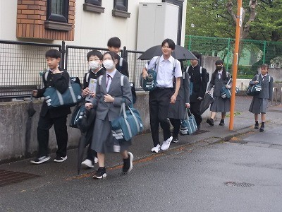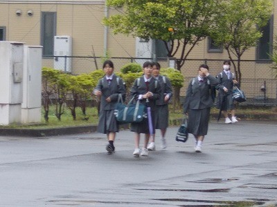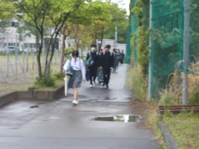 心配されていた雨も上がり、生徒は安心して登校していました。