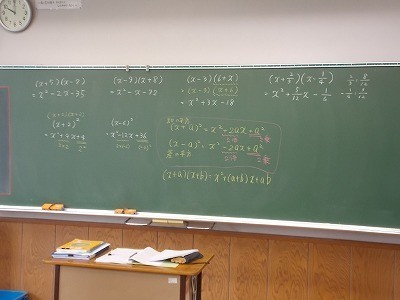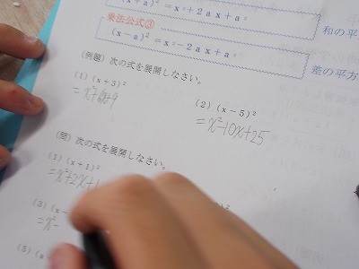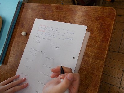 乗法公式をつかって、計算を素早く行う方法を確認していました。