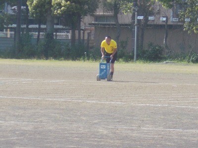朝早くから、グラウンドを体育で使用するために、整備しています。