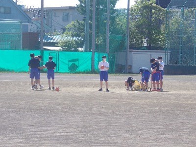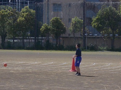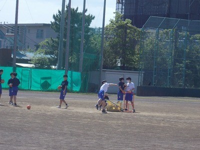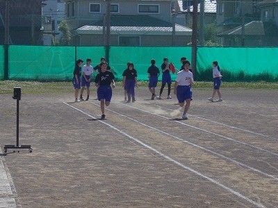 新体力テストのようすです。ハンドボール投げと50m走を行っています。