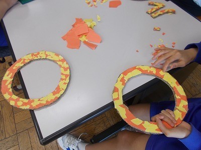 学級目標の掲示物をつくっています。