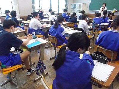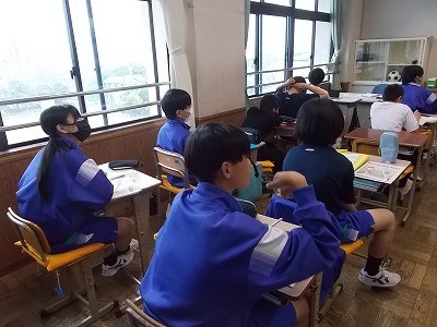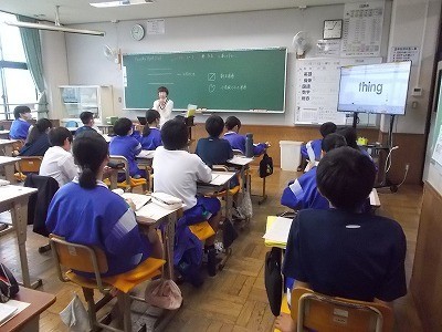 ”thing”と”sing”の発音のちがいについて確認し、実際に発音しています。なかなか難しいですね。