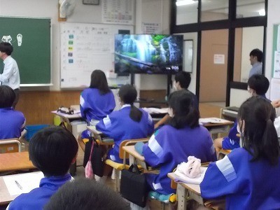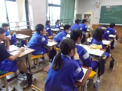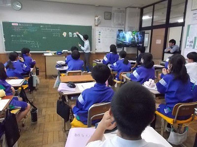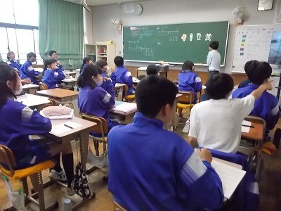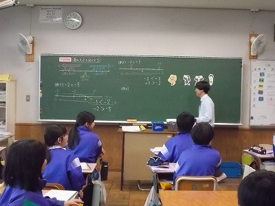 数直線やモデルを使いながら、視覚的にわかりやすい授業が行われています。生徒も授業に集中しています。