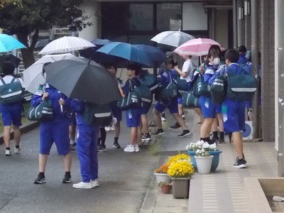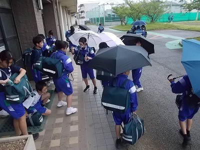 下校のようすです。小雨が降っていましたが、マナー等をしっかりと意識して、下校していきました。