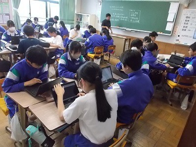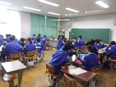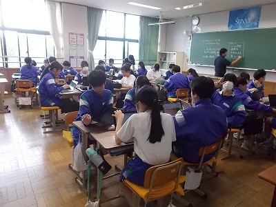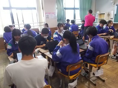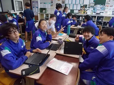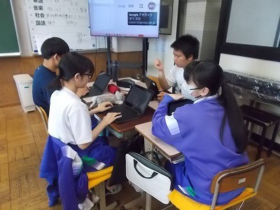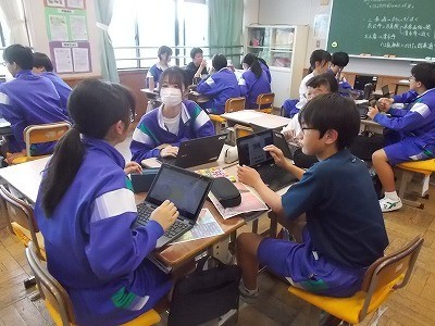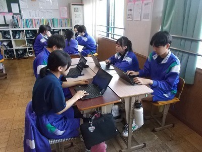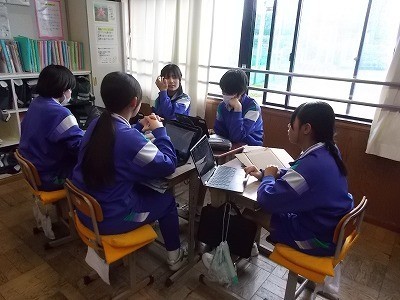 修学旅行のタクシー研修でどこに行くか、グループで話し合っています。
