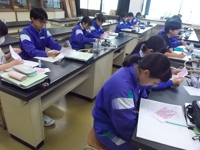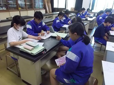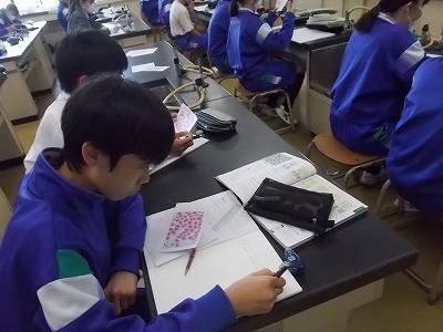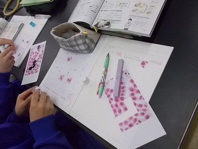 「細胞分裂」について、実際の写真を切って、順番に並び替えていました。