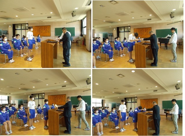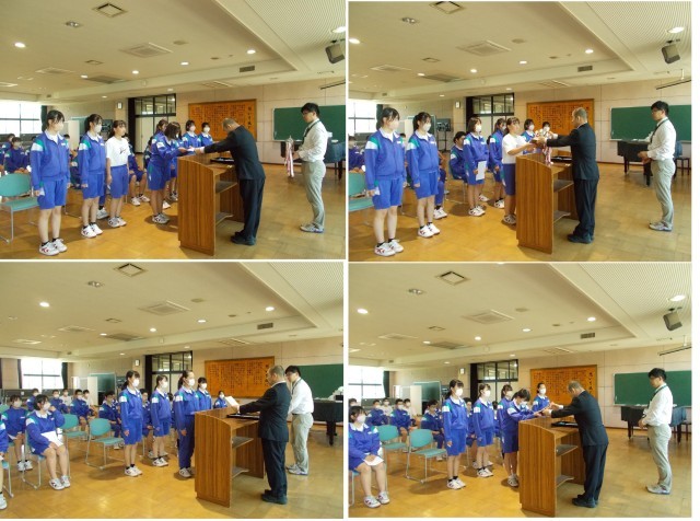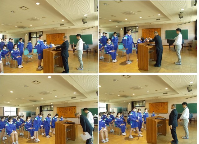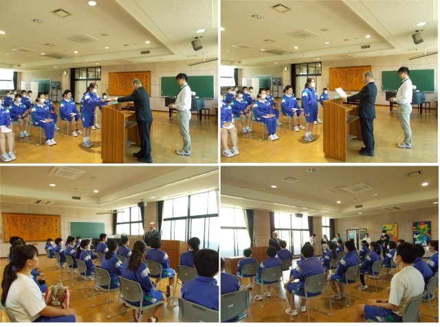 先日行われた各部活の大会で、優秀な成績収めた部活や個人の表彰が行われました。中体連に向けて弾みになりました。