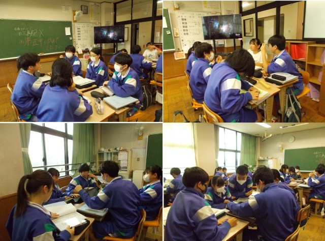 総合の授業です。修学旅行の班別研修の計画を立てています。みんなとても楽しそうです。