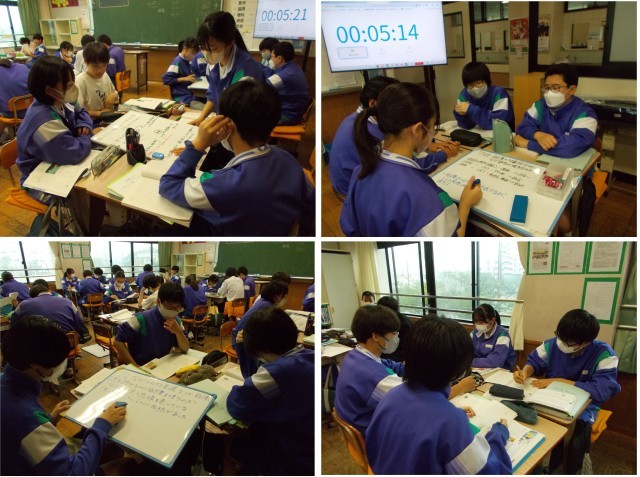 国語の授業です。作者の考えについて、自分で考えたことをグループで議論し合っています。みんなよく話をしています。