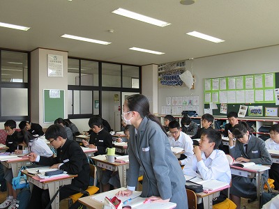 2年2組、保健体育の授業です。ハードルの時間です。今日は、スキップをしながら「抜き足」を意識して跳ぶ練習をしています。徐々にコツがつかめてきたようです。