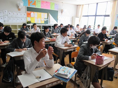 3年4組、理科の授業です。「身の回りには、どんな運動があるのか」を教科書に載っている様々なスポーツから考えています。