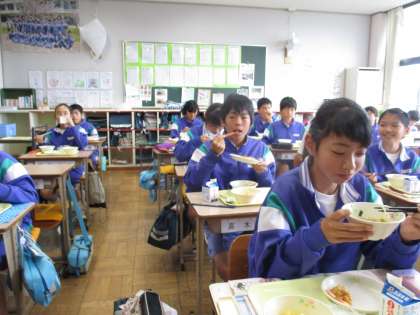 写真は、2年1組と3年4組の給食時間です。