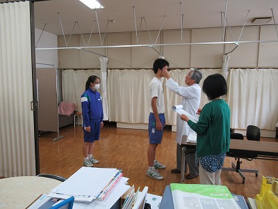 本日、眼科検診が行われました。今日は2年4組、2年5組、3年生全員の検診でした。これで眼科検診は終了です。治療等の勧めがあった場合は、一度受診をお願いいたします。
