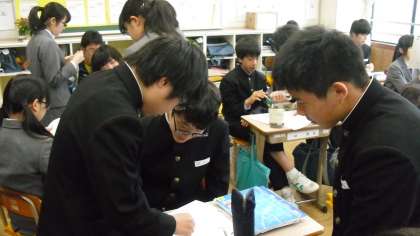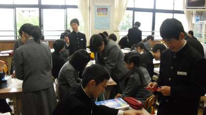 今日は問題演習です。2年の3学期に学習した確率の問題や、この4月に勉強した式の展開・因数分解等に、友達と教え合いながら一生懸命取り組んでいました。