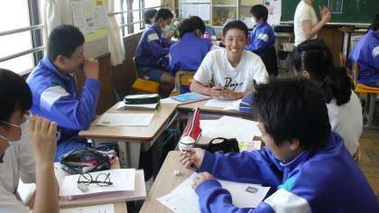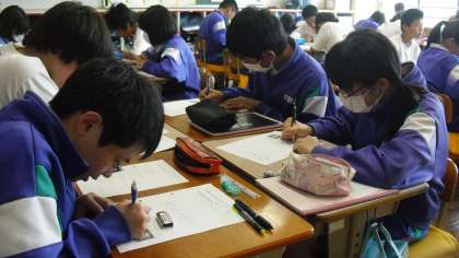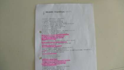 SEAMO作詞の「Continue」という歌詞を題材としての学習です。まずは個々に気になった歌詞に線を引き、その理由を班になって意見交換し合い、本時の主題「夢や目標の実現に向けて」に迫ろうとしました。