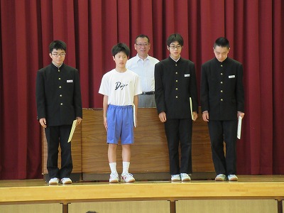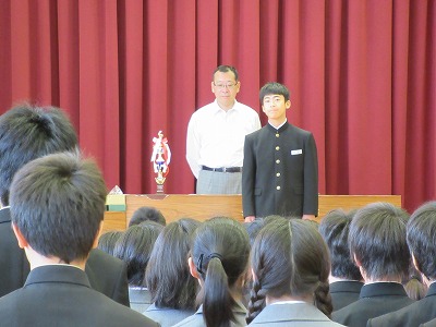 今日は朝礼がありました。生徒会長の杉村さんのさわやかなあいさつからスタートしました。